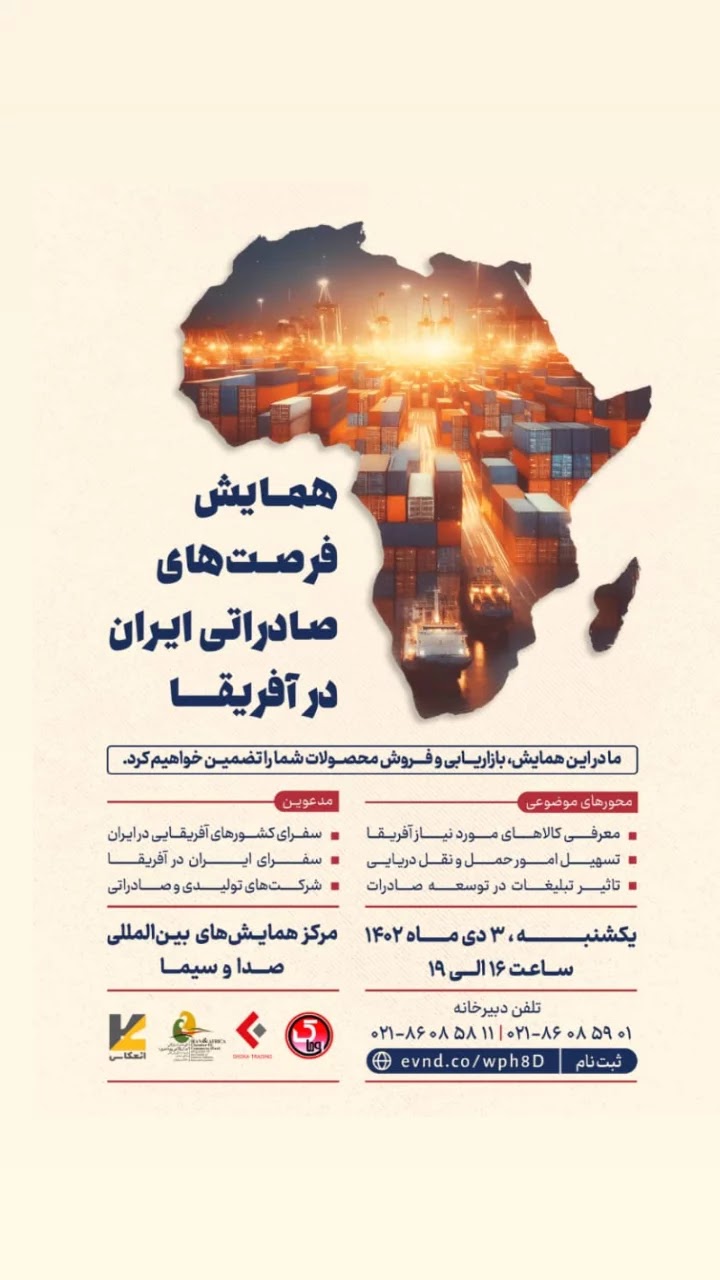 تصاویر زیر بخشی از همایشها و رویدادهای تخصصی برگزارشده توسط روماک است که با هدف معرفی فرصتهای تجاری و سرمایهگذاری در بازارهای آفریقا برای شرکتها و صادرکنندگان ایرانی برگزار شده است.